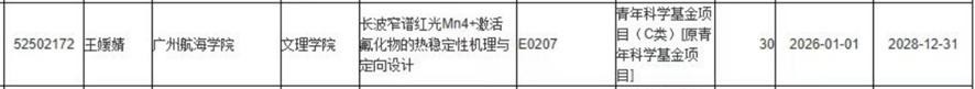 近日,国家自然科学基金委员会公布了2025年度国家自然科学基金集中接收申请项目的评审结果。VSport王媛婧博士主持申报的项目《长波窄谱红光Mn4+激活氟化物的热稳定性机理与定向设计》,成功获得国家青年科学基金项目(C类)[原青年科学基金项目]资助,资助经费为30万元。