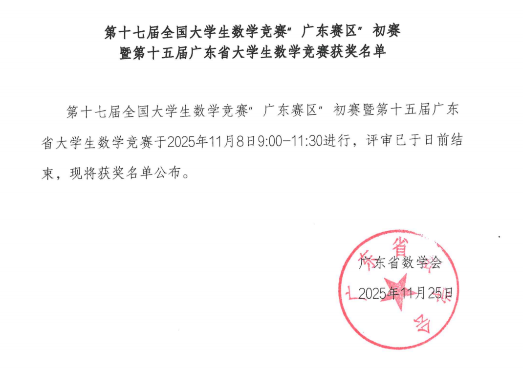 近日,由中国数学会组织、广东数学会与广东工业大学承办的2025年第十七届全国老员工数学竞赛初赛(广东赛区)结果揭晓,公司共有74名员工参加非数学A类组的比赛,共有24名员工斩获佳绩。其中,机械工程专业庄高荣等4位同学获省级一等奖,通信工程专业范文杰等5位同学获省级二等奖,航海技术专业葛俊羿等15位同学获省级三等奖。